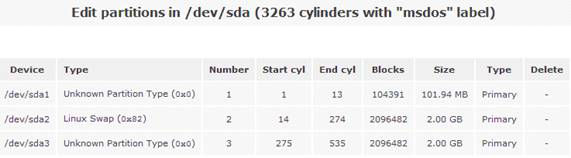 然后點擊磁盤“/dev/sda”,系統(tǒng)會顯示當(dāng)前磁盤的詳細(xì)分區(qū)信息。如圖